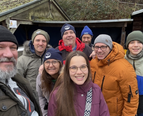 Zum Pachtgrundstück zählen ein großer Parkplatz mit Ausrüstungstischen, ein beheizbarer Container zum Umziehen und Aufenthaltsorte für das gemütliche Beisammensein. Auch eine Toilette ist vorhanden.